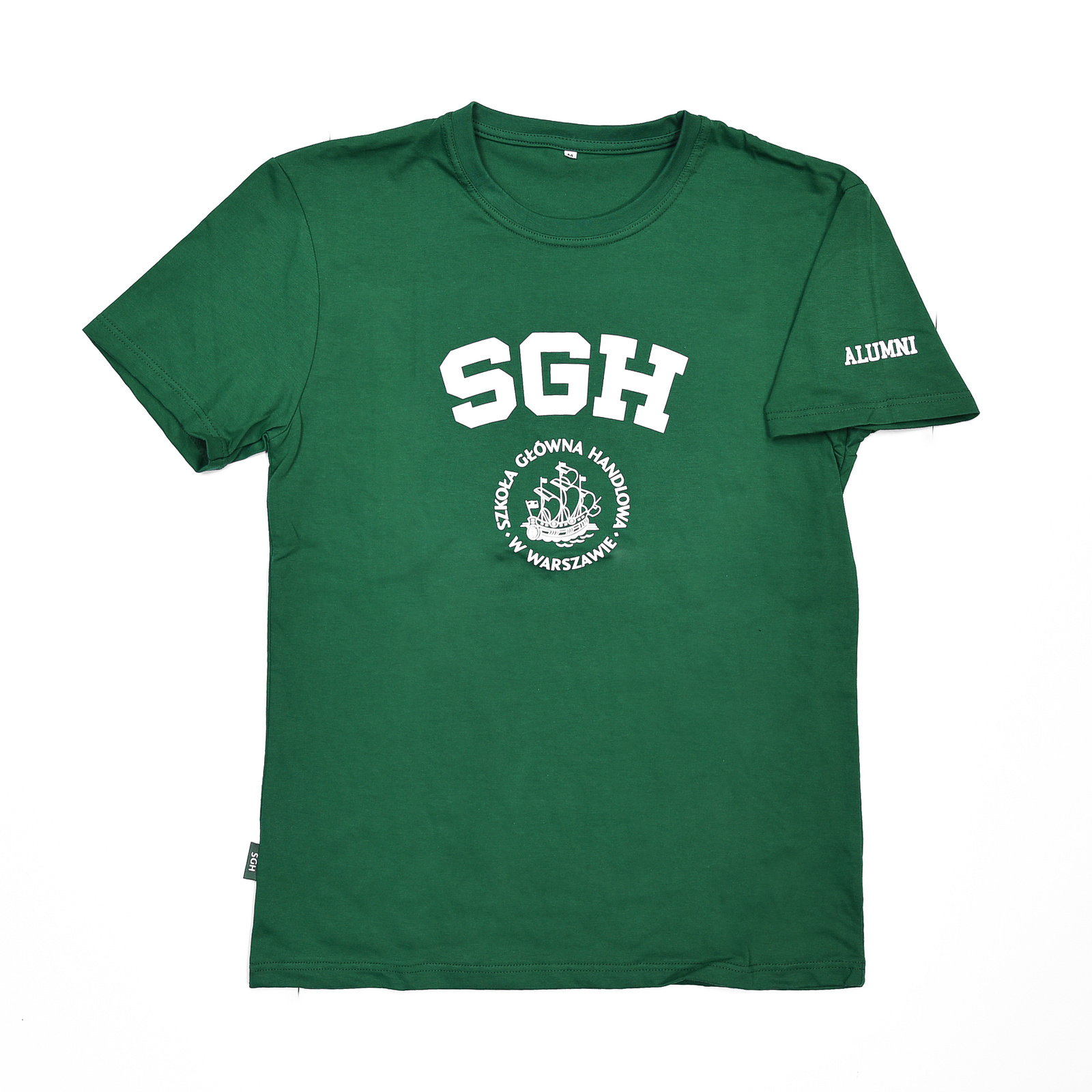 Koszulka t -shirt z półokrągłym dekoltem w kolorze zielonym i haftem AUMNI